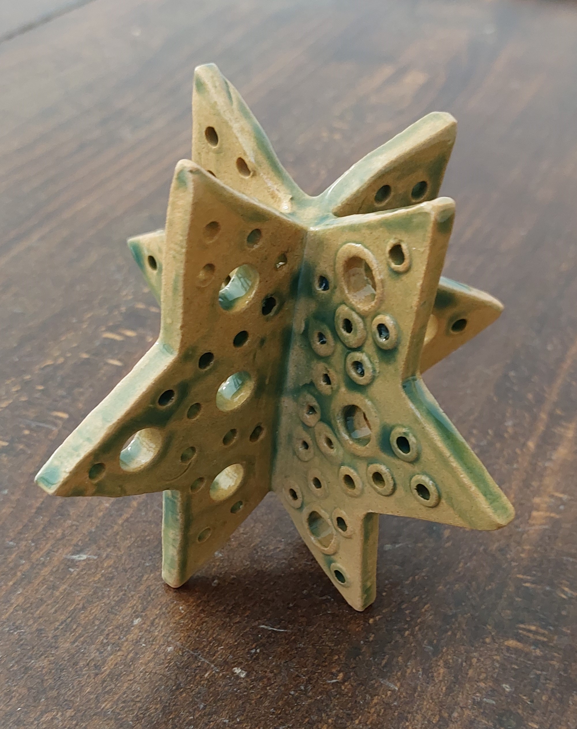 Keramika malá glazovaná 6166 Hvězda zelená Základní informace Katalogové číslo 3166 Rozměr 11 x 11 cm Barva Zelená Složení Keramika glazurovaná Kategorie Keramika / Vánoce / Skladem Ano [1] Cena 71 Kč Vložit do košíku Popis